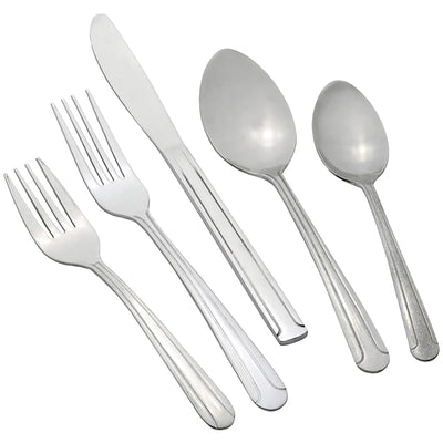 The Dominion pattern features an art deco design with two lines down the length of the handle.