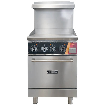 The EFI HRG24-24GM-ELC delivers professional-grade cooking performance in a compact 24" footprint, making it ideal for restaurants, cafes, and food service operations with limited space. This electric griddle top range features a spacious cooking surface that heats evenly and consistently, allowing you to prepare pancakes, burgers, grilled vegetables, and more with precision. Perfect for high-volume breakfast service or quick lunch preparation, this range combines efficiency with versatility to boost your kitchen's productivity and menu options.